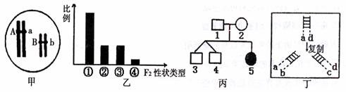C.丙图中5号女儿患单基因遗传病,那么3、4号异卵双生兄弟的基因型相同 D.从丁图可看出DNA复制是半保留复制