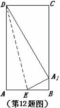 12.如图,四边形ABCD是一张矩形纸片,AD = 2AB, 若沿过点D的折痕DE将A角翻折,使点A落在 BC上的A1处,则∠EA1B=______________度. 号写在括号里)