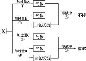 27.(15分)A、B、C、D分别是Ba(OH)2、HCl、AlCl3和NaOH四种溶液中的一种,X是一种正盐。用X溶液按下图所示方法,可将它们一一确定。图中涉及的各种气体在标准状况下的密度均小于2g?L-1。