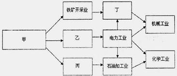 (l)据左图分析辽中南工业基地形成的主要条件。(3分) (2)辽中南是我国的重工业基地,写出图中甲、乙、丙、丁的含义,完成下面主要工业部门之间的联系结构图。(4分)