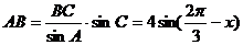 (Ⅱ)若BC=2 ,角B等于x,周长为y,求函数 的取值范围.
