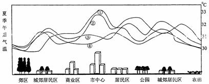 材料二:久居城市的人们都有类似的体验;夏季里市区的气温要比郊区高。为了躲避酷热难耐的暑气,人们不得不跑到绿树成荫、河湖交错的郊区或乡村去享受一份清凉和惬意。为什么在享受现代城市的舒适与便利的同时,市区人要忍受比郊区更为炎热的酷暑呢? (1)材料一中的四条曲线,能正确表示市区、郊区、近郊农村夏季午后气温变化的是____ __________;在这种午后气温现象作用下,如不考虑其它因素,市区与郊区近地面的风向特点是________________________________________。 (2)请根据图文材料所揭示的问题,写出主题词(限4~6字)____________________。 如就这一主题进行课题研究,请补充完成基本的研究思路。