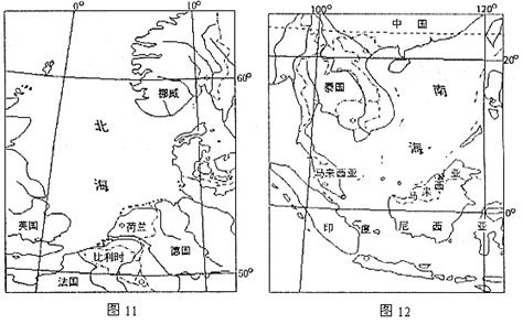 (1) 简述北海与南海的海水性质差异、资源优势与存在的环境问题。(6分) (5)比利时、荷兰、挪威从泰国、马来西亚、印度尼西亚进口天然橡胶,请选择合理的运输方式,并说明理由。(4分)