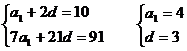 (1)设等差数列 的公差是d ,则a1+2d=4,3a1+3d=18,解得a1=8,d =-2,