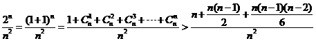 因为k≥5,所以2k2-(k+1)2=k2-2k-1=(k-1)2-2>0. 所以2k+1>(k+1)2.即当n=k+1时,不等式也成立. 根据(i)和(ii)所述,对于所有n≥5,n∈N *,n2<2 n都成立.