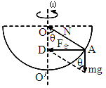 如图所示,半径为R的半球形碗内有一个质量为m的物体A(可看作质点),A与碗壁间无摩擦.当碗绕竖直轴OO'匀速转动时,物体A在离碗底高为h处紧贴着碗一起运动而不发生相对滑动,求碗转动的角速度.
