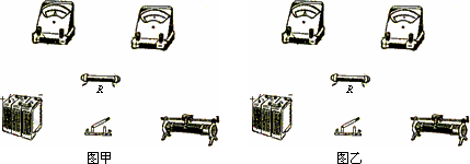 图甲、乙是两组同样的器材实物图,用来测量待测电阻R的阻值,每组器材中包括:电池,电键,变阻器,电压表,电流表,等测电阻R,若干导线。