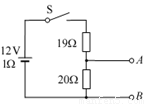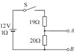 如图所示的电路中,电源的电动势为12V,内阻为1Ω,两定值电阻的阻值分别为19Ω和20Ω。开关S闭合后,电路中的电流为 A,A、B间的电压为 V。![]()