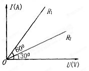 两电阻R1和R2的电流I与电压U的关系图线如右图所示,可知两电阻的大小之比R1∶R2等于( )