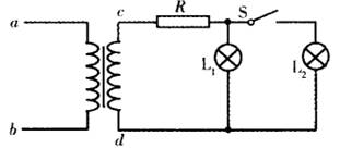 如图所示,理想变压器的原线圈a、b两端接正弦交流电压,副线圈c、d两端通过输电线接两只相同的灯泡L1、L2,输电线的等效电阻为R,当开关由原来的断开状态变为闭合状态时,下列说法正确的是