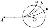 圆形区域内有垂直于纸面的匀强磁场,三个质量和电荷量都相同的带电粒子a、b、c,以不同的速率沿着AO方向对准圆心O射入磁场,其运动轨迹如图所示.若带电粒子只受磁场力的作用,则下列说法正确的是 ( )![]()