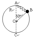 半径R=0.50m的光滑圆环固定在竖直平面内,如图所示,轻质弹簧的一端固定在环的最高点A处,另一端系一个质量m = 0.20kg的小球,小球套在圆环上,已知弹簧的原长Lo = 0.50m,劲度系数K = 4.8N/m,将小球从图示位置的B点由静止释放,小球将沿圆环滑动并通过最低点C,在C点时弹簧的弹性势能