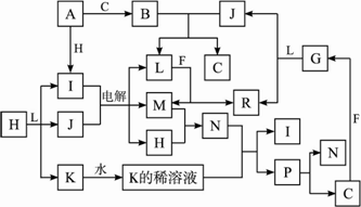 常温下,A、F为金属单质,F既能与L溶液反应,又能与N溶液反应.C、H、M为气体单质,其中H呈黄绿色,A、B、I、K、L、R焰色反应呈黄色.请完成下列问题: