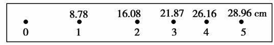 在“研究匀变速直线运动”的实验中,用打点计时器记录纸带运动的时间,计时器所用电源的频率为50 Hz,下图为小车带动的纸带上记录的一些点,在每相邻两点间都有四个点未画出,按时间顺序取0、1、2、3、4、5六个点,用米尺量出1、2、3、4、5点到0点的距离如下图所示.
