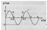 如右图为一列沿x轴正向传播的简谐横渡在t=0时刻的波形图,P为0.9m处的质量,Q为2.2m处的质点。若经历△t=0.1s,P质点恰好第一次运动到波谷,则下列说法正确的是