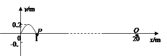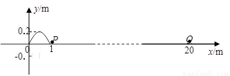 有一列沿x轴正方向传播的简谐横波在t=0时刻,在x轴上平衡位置xP=1m的P质点恰好开始振动,如图所示,当平衡位置xQ=20m的Q质点恰好开始振动时,P质点已通过的路程是: