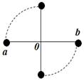 如图所示,两个质量分别为m和2m的小球a和b,之间用一长为2L的轻杆连接,杆在绕中点O的水平轴无摩擦转动。今使杆处于水平位置,然后无初速释放,在杆转到竖直位置的过程中,求:![]()