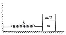 的两木块,下方木块与一劲度系数为k的弹簧相连,弹簧的另一端固定在墙上,如图所示。已知两木块之间的最大静摩擦为