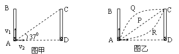 如图甲所示,竖直直放置的两端封闭的玻璃管中注满清水,内有一个红蜡块能在水中以0.3m/s的速度匀速上浮。现当红蜡块从玻璃管的下端匀速上浮的同时,使玻璃管水平匀速向右运动,测得红蜡块实际运动的方向与水平方向的夹角为37°,则(已知sin37°=0.6;cos37°=0.8)