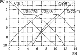 (1)在pH=0~4时,H2CO3溶液中主要存在的离子为: ;在pH=12时,H2CO3溶液中主要存在的含碳阴离子为: ;