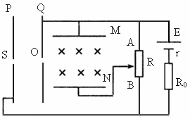 如图所示,金属板M、N水平放置,相距为d,其左侧有一对竖直金属板P、Q,板P上小孔S正对板Q上的小孔O,M、N间有垂直纸面向里的匀强磁场,在小孔S处有一带负电粒子,其重力和初速均不计,当变阻器的滑动触头在AB的中点时,带负电粒子恰能在M、N间做直线运动,当滑动变阻器滑片向A点滑动过程中,则