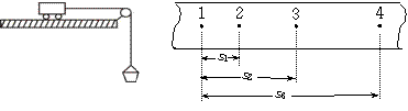 ①按正确操作得到的一条纸带如上右图所示,打相邻两点的时间间隔为T。则车运动的加速度大小a=___________(用s1、s2、s3和T表示)。