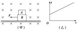 某空间存在着如图(甲)所示的足够大的,沿水平方向的匀强磁场.在磁场中A、B两个物块叠放在一起,置于光滑绝缘水平地面上,物块A带正电,物块B不带电且表面绝缘.在