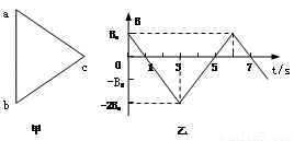 图甲正三角形导线框abc放在匀强磁场中静止不动,磁场方向与线框平面垂直,磁感应强度B随时间t的变化关系图乙.t=0时刻磁感应强度方向垂直纸面向里.图丙中能表示线框ab边受到的磁场力F随时间t变化关系的是(力的方向规定以向左为正方向)( )
