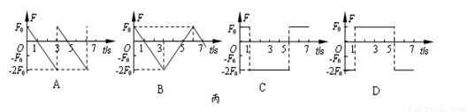 图甲正三角形导线框abc放在匀强磁场中静止不动,磁场方向与线框平面垂直,磁感应强度B随时间t的变化关系图乙.t=0时刻磁感应强度方向垂直纸面向里.图丙中能表示线框ab边受到的磁场力F随时间t变化关系的是(力的方向规定以向左为正方向)( )![]()