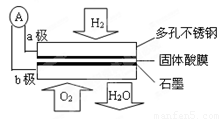 D.H+由a极通过固体酸膜电解质传递到b极