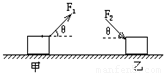 如图所示,两个与水平面夹角相同大小相等的力F1和F2作用在质量相同的物体上,使物体均能在水平面内作直线运动,(甲)图中F1为拉力,(乙)中F2为推力,当两物体经相同位移时,F1和F2对物体做功分别为W1和 W2,则( )