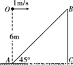 如图,斜面与水平面之间的夹角为45°,在斜面底端A点正上方高度为6 m处的O点,以1 m/s的速度水平抛出一个小球,飞行一段时间后撞在斜面上,这段飞行所用的时间为(g=10 m/s2)