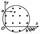 (13分)一个重力不计的带电粒子,以大小为v的速度从坐标(0,L)的a点,平行于x轴射入磁感应强度大小为B、方向垂直纸面向外的圆形匀强磁场区域,并从x轴上b点射出磁场,射出速度方向与x轴正方向夹角为60°,如图所示.求: