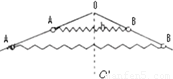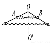 如图所示,竖直平面内两根光滑细杆所构成的∠AOB被铅垂线OO′平分,∠AOB=120°.两个质量均为m的小环通过水平轻弹簧的作用静止在A、B两处,A、B连线与OO′垂直,连线距O点高度为h,已知弹簧原长为