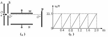 并发出荧光。现给金属板M、N之间加一个如图(b)所示的变化电压u1,在t=0时刻,M板电势低于N板。已知电子质量为