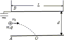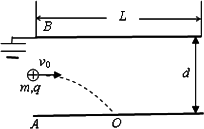 如图所示,水平放置的平行板电容器,原来AB两板不带电,B极板接地,它的极板长L=0.1 m,两板间距离d=0.4 cm,现有一微粒质量m=2.0×10-6 kg,带电量q=+1.0×10-8 C,以一定初速度从两板中央平行于极板射入,由于重力作用微粒恰好能落到A板上中点O处,取g=10 m/s2.试求: