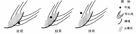 锋线指锋面与地面的交线,下图为我国某地区某年4月11日—13日锋线移动情况。读图判断,下列表述正确的是