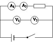 和两个电压表 V1、V2,A1的量程大于A2的量程, V1的量程大于V2的量程, 把它们接入如上图所示的电路,闭合开关后(?? )