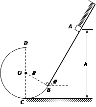 60°的粗糙平直导轨与半径为R的光滑圆环轨道相切,切点为B,轻弹簧一端固定,自由端在B点,整个轨道处在竖直平面内。现将一质量为m的小滑块(视为质点)紧靠且压缩弹簧,并从导轨上离水平地面高h =