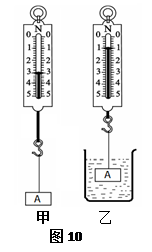 如图10甲所示,实心物体A所受的重力为________N。把物体A浸没在水中时弹簧测力计的示数如图乙所示,则物体A受到的浮力为________N。![]()