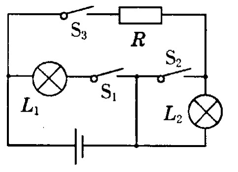 D.S1、S2、S3均闭合时,灯L1亮,灯L2不亮