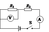 (6分)如图所示,电路中电源电压为6V。闭合开关S,电压表示数为4V,电流表示数为0.4A。求R1、R2的阻值