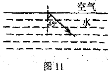 如图11所示,是一条经水面反射后的光线。请在图中画出其入射光线及与入射光线对应的折射光线的大致方向。