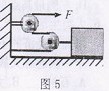 如图5所示,在水平地面上放一个重300N、底面积为100cm2的物体,不考虑绳的重力和绳与滑轮间的摩擦,匀速拉动物体时,物体与地面的摩擦力为60N,则水平拉力F= N,物体对地面的压强是 Pa。(各连接部分的绳均水平)
