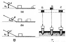 图甲是研究“物体动能的大小与哪些因素有关”的实验装置,实验中让同一钢球从斜面上不同的高度由静止滚下,碰到同一木块上.(A、B两球的质量相等,C球的质量最大)
