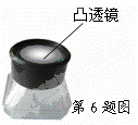 昆虫观察盒的盒盖是一个凸透镜(如图所示),盒盖到盒底的距离为10cm,利用凸透镜能成正立、放大像的原理可以方便地观察小昆虫。在一次实验中,小明不小心把观察盒上的凸透镜打碎了。为了修好观察盒,老师给他提供了焦距为4cm、8cm、10cm和12cm的凸透镜各一个,他应该选![]()