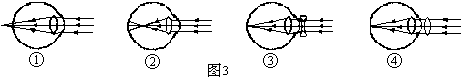 如图3所示的四幅图,分别表示来自远处的平行光线经远视眼、近视眼的成像情况和对它们进行矫正的做法,其中表示近视眼成像及矫正做法配对正确的是 ( )