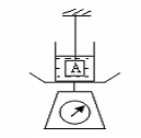 如图示,在托盘台秤上放有一个装水的烧杯,一个质量m=900g、体积V=200cm3的实心物体被用细线吊着浸在水中。(g=10N/kg)