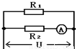 如图所示的四个电路中,电压U都相等,并且电阻R1大于R2,电流表示数最小的是( )