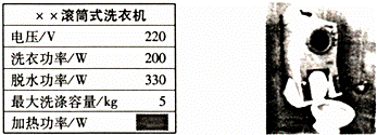 (3)某次洗衣时,首次进水量为20kg,加热时电能的80%转化为水的内能,正常加热14min水的温度升高10℃就达到设定要求,由于洗衣机铭牌上的加热功率模糊,求:①水吸收的热量,②洗衣机的加热功率[c水=4.2×103J/(kg?℃)].
